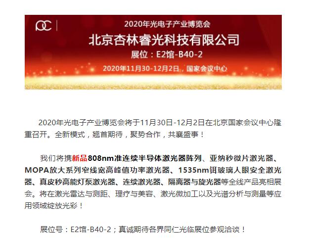 2020年光電產(chǎn)業(yè)博覽會-杏林睿光期待您的蒞臨