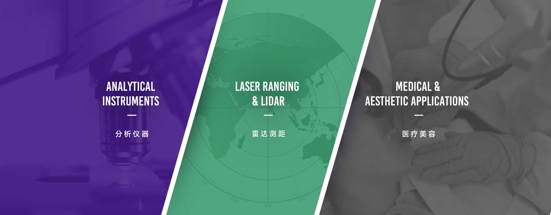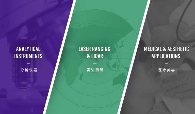 ? ? ? 我們?cè)诜治鰞x器、醫(yī)療美容、雷達(dá)測(cè)距、激光加工等多個(gè)領(lǐng)域?yàn)閺V大客戶(hù)提供了諸多具有創(chuàng)新性和競(jìng)爭(zhēng)力的產(chǎn)品,同時(shí)我們亦可根據(jù)客戶(hù)的需要,為您提供定制化的整體解決方案和優(yōu)質(zhì)的服務(wù)。