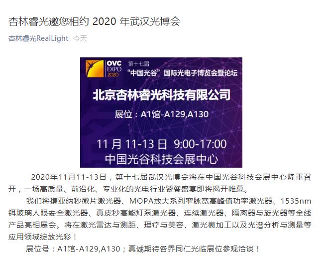 杏林睿光邀您相約 2020 年武漢光博會(huì)